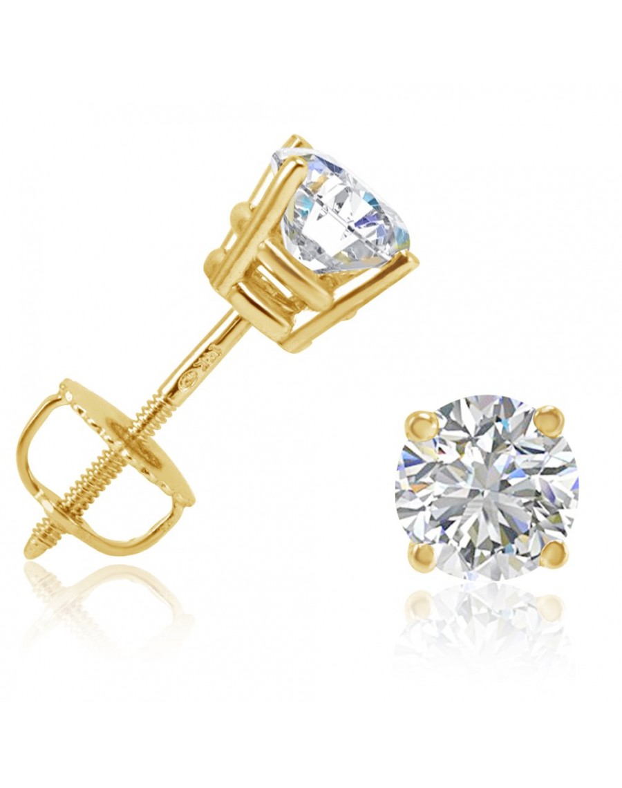 AGS Certified 1ct TW Round Diamond Stud Earrings in 14K Gold with Screw Backs
