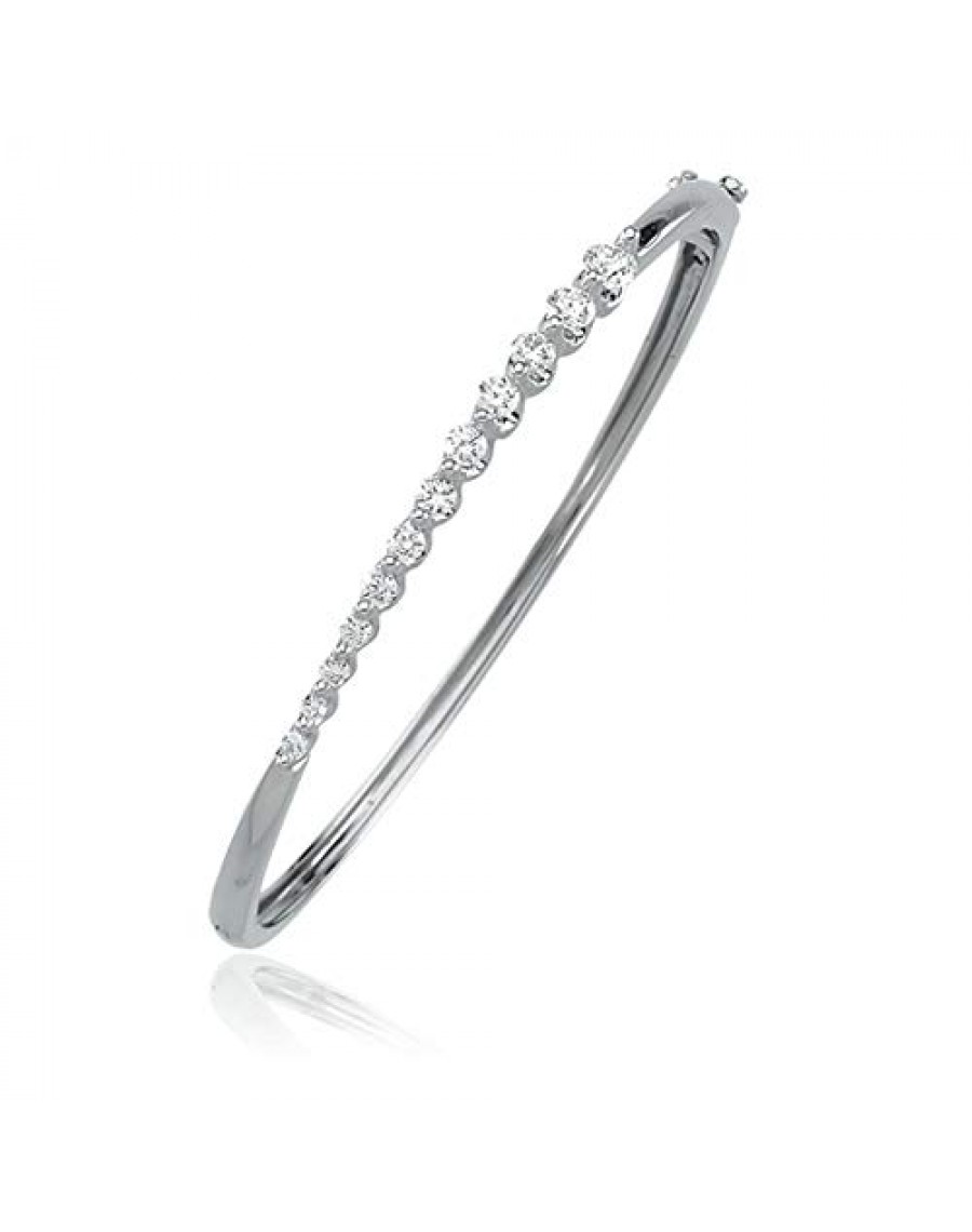 This 1 carat, Journey diamond bracelet is crafted with 14k white gold and includes a set of beautiful round diamonds cascading down the side of the bracelet.