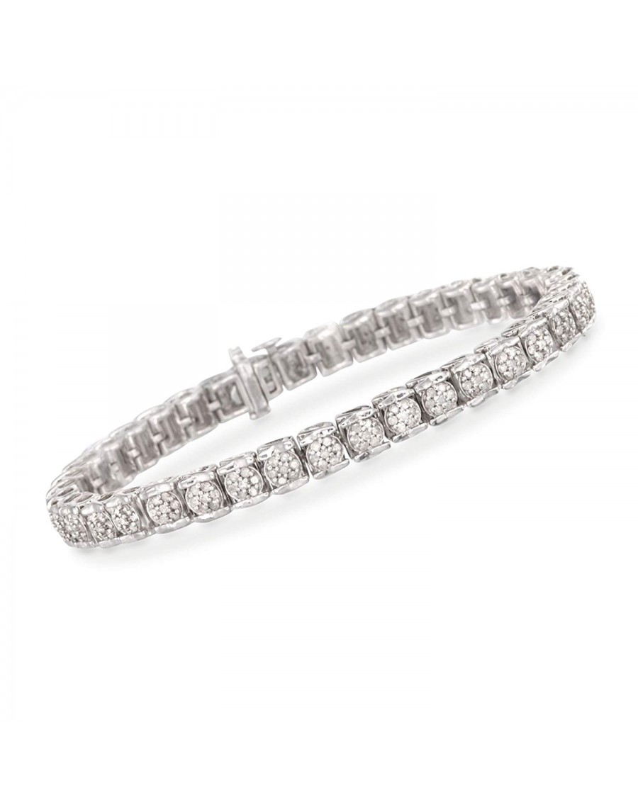 A trusted jeweler in 1952, Ross-Simons is dedicated to quality and value. Our tennis style diamond bracelet presents a neat row of 2.15 ct. t.w. diamond clusters, edged with gleaming silver bars. Each cluster of diamonds creates the illusion of a larger diamond round for a bold and glamorous look you'll love. Single latch safety. Box clasp, diamond cluster tennis bracelet. Each Ross-Simons item arrives in a fine jewelry presentation box. Shop Ross-Simons jewelry risk-free as all items include a 30-day, 100% money-back guarantee.