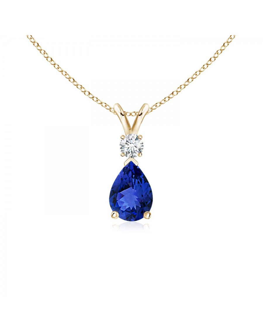 This classic solitaire pendant features a pear-shaped tanzanite secured in a prong setting. A glimmering round diamond sits atop the bluish-violet gemstone adding to the design's sparkle. Simple yet alluring, this tanzanite pendant in platinum is crafted with a lustrous v-bale.